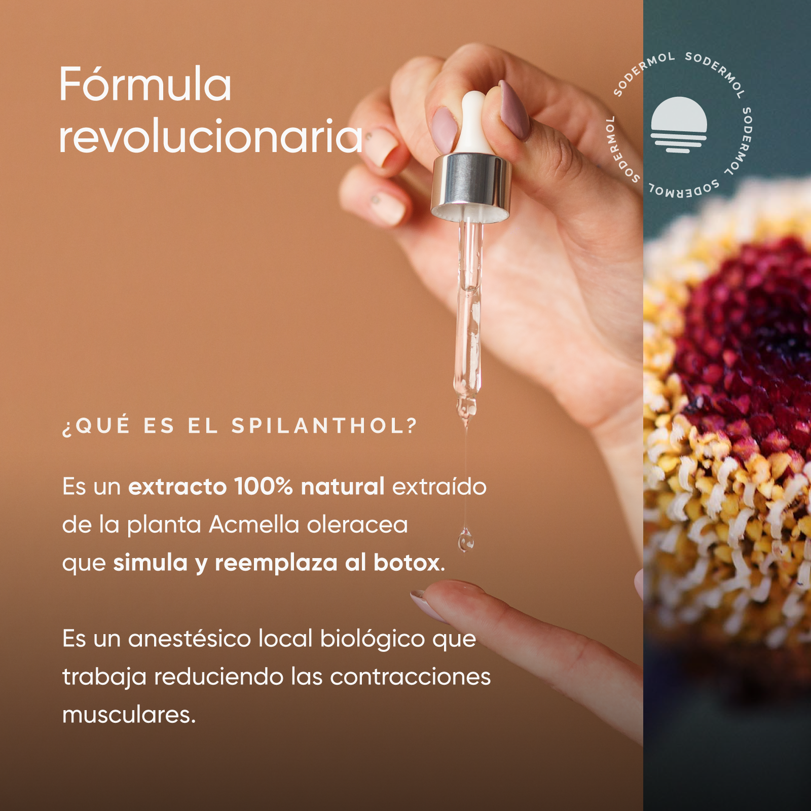 Su fórmula revolucionaria incluye ingredientes como el espilantol, unanestésico naturalque relaja los músculos y minimiza las arrugas de expresión del rostro. Sus propiedades miorrelajantes son muy rápidas, por lo que los efectos de este serum facial se hacen notar de forma inmediata.